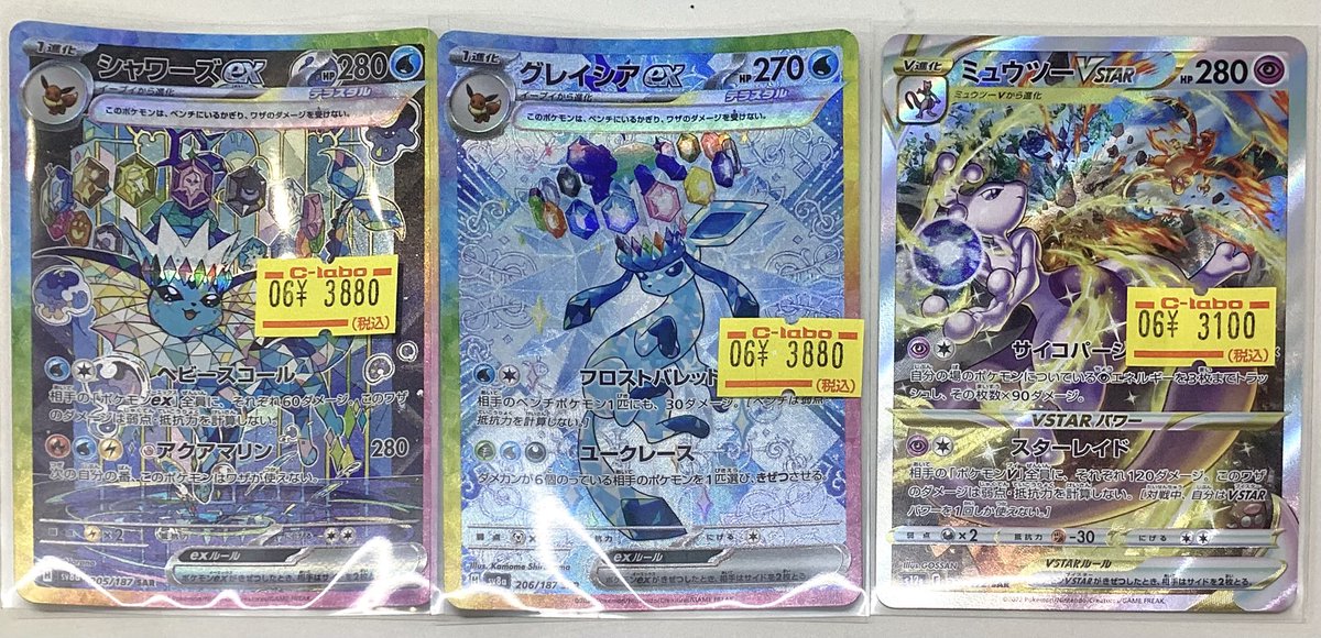 【ポケモンカード販売情報】 💧シャワーズex SAR💧 💎グレイシアex SAR💎 🔮ミュウツーVstar SAR🔮 特価品入荷いたしました✊🏻🎀 ぜひご来店ください♪̊̈♪̆̈