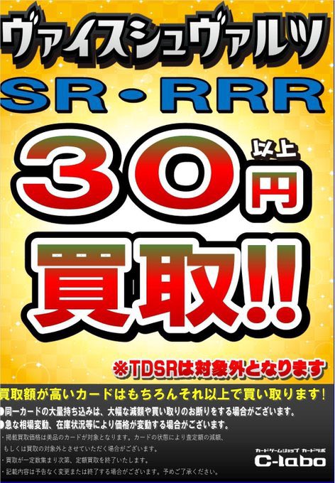 【ホロカ 買取情報】 定額買取募集中です!!! ・UR 定額400円買取 ・SR 定額200円買取 ・S 定額100円買取 ・RR 定額100円買取✨️ ・R 定額10円買取 お持ち込みお待ちしております!!
