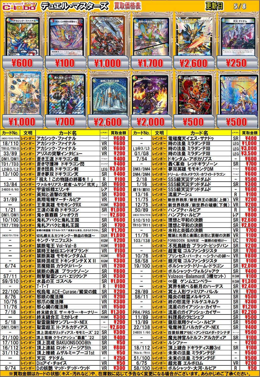 【デュエマ 買取情報】 買取表更新いたしました ぜひお持ち込みお待ちしております!