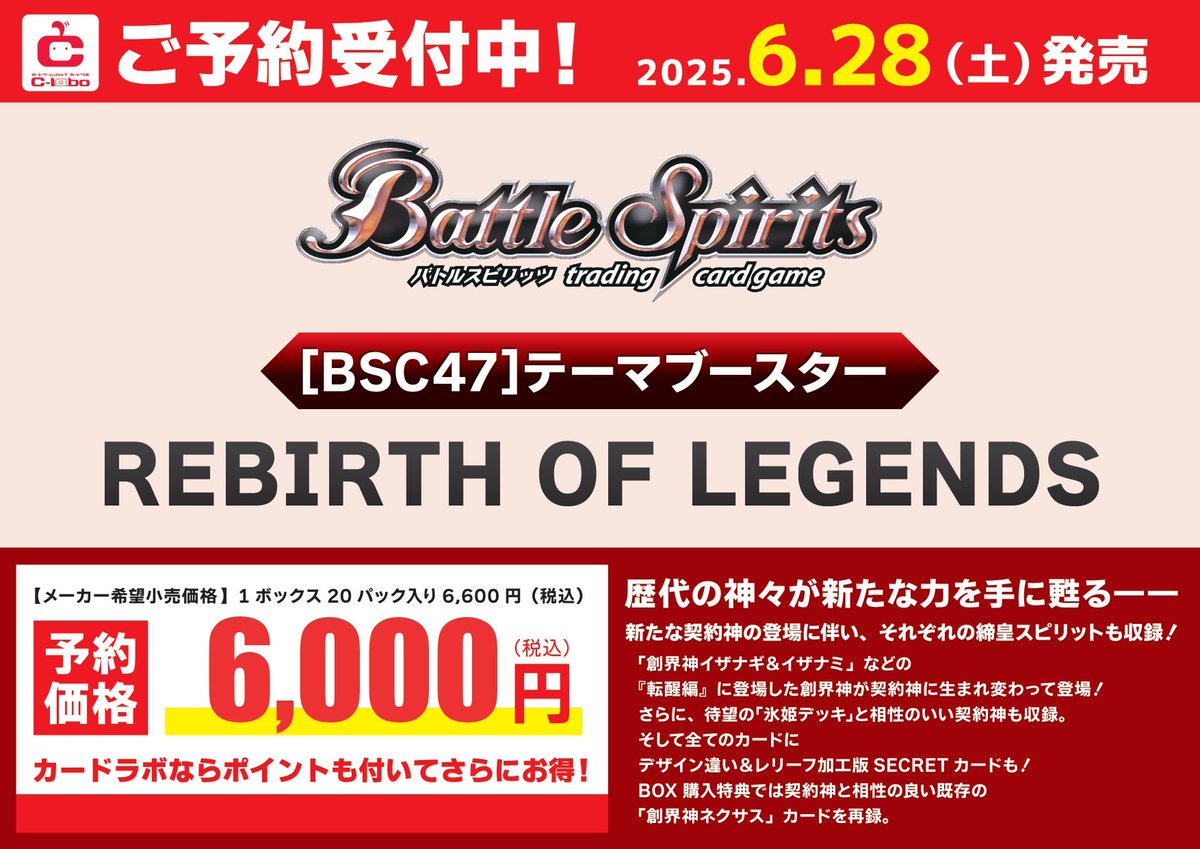 【バトルスピリッツ 予約情報】 6/28(土)発売 [テーマブースター] REBIRTH OF LEGENDS ご予約開始いたしました!! ご来店お待ちしております