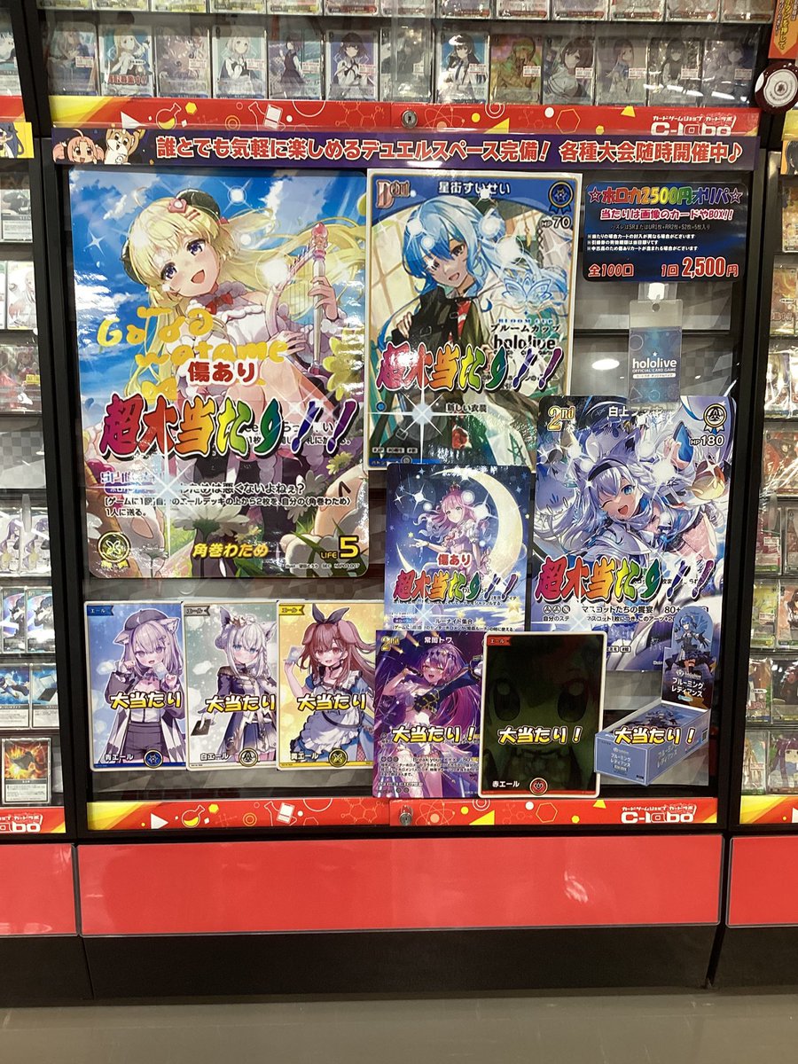 🐑【ホロカオリパ情報】🐑 1口2500円オリパ展開中です🐑 超大当たりには角巻わため🐑SECが入ってます✨️✨️ その他ブルームカッププロモのすいちゃん☄️も入ってます✨️ 第1弾のBOXや🌸みこだにぇ🌸プロモエール🌸などなど 豪華ラインナップとなっております🌽 是非当店までお越しください🍙🥐