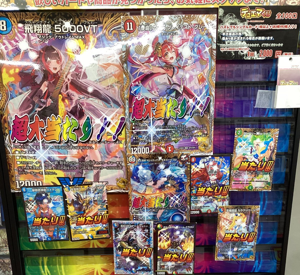 デュエマ2️⃣0️⃣0️⃣0️⃣円新しく展開致しました 大当たりは「使命」の頂天グレイテスト・グレート🔥 飛翔龍5000VT🐲 などなど‼️ 是非ご来店お待ちしております♪
