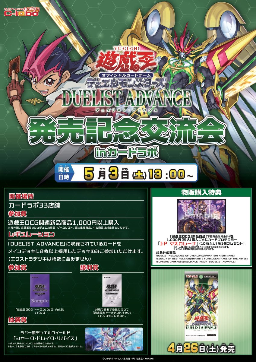 【イベント案内】 遊戯王OCG「DUELIST ADVANCE」 発売を記念した新商品研究会を、 カードラボにて開催決定! 郡山店では5月3日(土)に開催予定です ぜひご参加お待ちしております✨