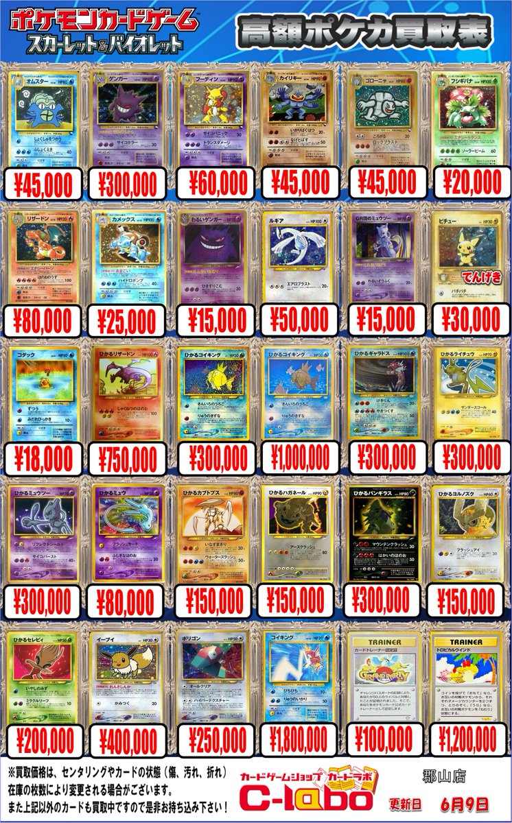 【ポケカ買取情報】 スターδ、デルタ種など、お買取募集中です🔥 ・わるいゲンガーLV.32【-】{旧裏} ¥15,000買取 ・GR団のミュウツーLV.35【-】{旧裏} ¥15,000買取 ・ラティオスexδ-デルタ種【★】{023/068} ¥22,000買取 お持ち込みお待ちしております☻