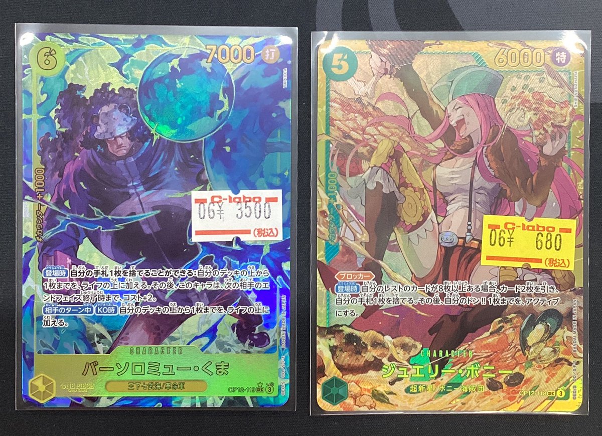 【ワンピースカード販売情報】 🟡くま SEC パラレル 🟢ボニー SEC 追加いたしました‼️ ご来店お待ちしております╰(*´︶`*)╯