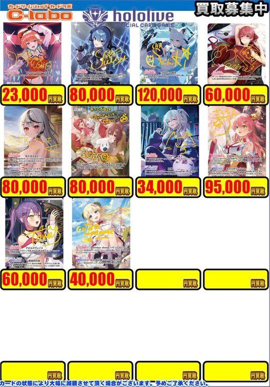 【ホロカ 買取情報】 高レア更新致しました✨ hBP01-007 星街すいせい 80,000円買取 hBP02-004 沙花叉クロヱ 20,000円買取 hBP02-013 白上フブキ 9,000円買取 hY03-003 赤エール[さくらみこ] 2,000円買取 お買取お待ちしております!!