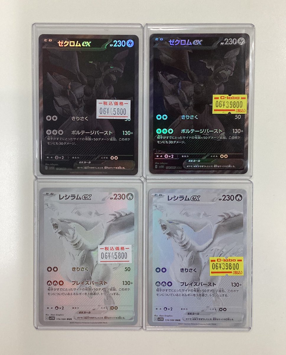 【ポケカ販売情報】 最新弾BWR在庫ございます✨ 『ゼクロムex』、『レシラムex』どちらも綺麗なイラストですね🤩 特価品もございますよ🙌 皆さまのご来店お待ちしております🤝