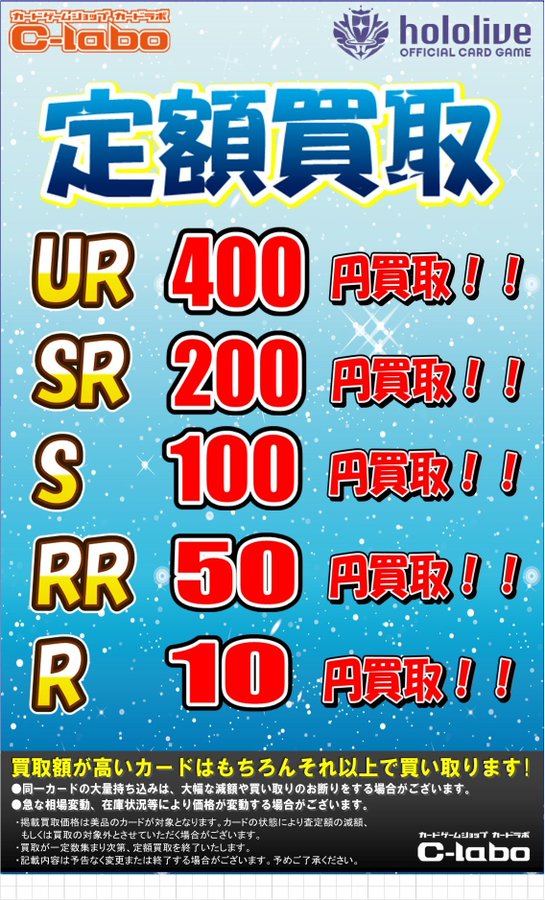 【ホロカ 買取情報】 定額買取大大募集中✨ ・UR 定額400円買取 ・SR 定額400円買取 ・S 定額100円買取 ・RR 定額100円買取 ・R 定額10円買取 お持ち込みお待ちしております!