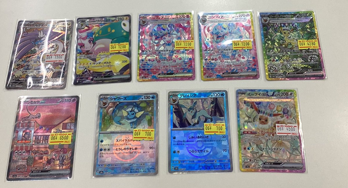 【ポケカ買取情報】 ブイズ買取募集中です🎀 ・グレイシアGX【P】{269/SM-P} ¥18000買取 ・エーフィGX【P】{124/SM-P} ¥25000買取 ・ブラッキーGX【P】{125/SM-P} ¥70000買取 ・ブラッキー(ブラッキーナイトバトル優勝プロモ){140/XY-P} ¥400000買取 皆さんのお持ち込みお待ちしております🌙