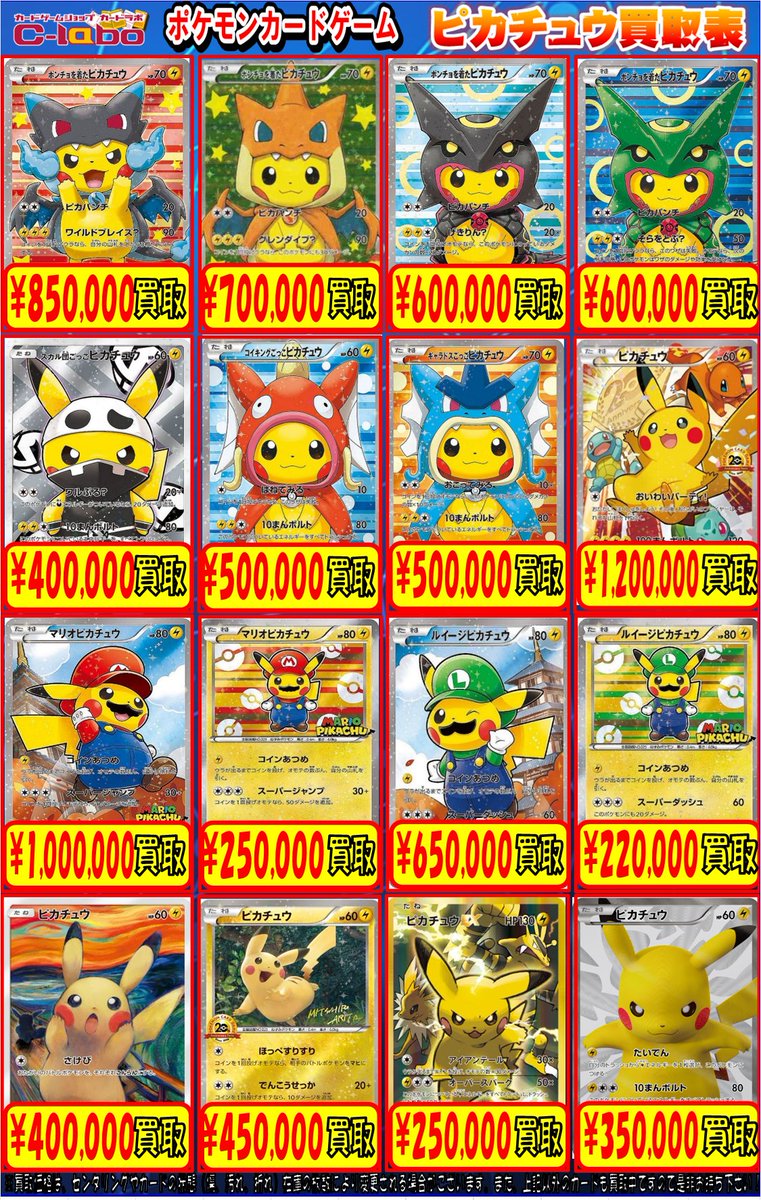 【ポケカ買取情報】 ・ポンチョを着たピカチュウ【P】{231/XY-P} [XY] ¥600000買取 ・火消し姿のピカチュウ【P】{209/SM-P} [その他] ¥70000買取 ・ヨコハマのピカチュウ【P】{280/SM-P} ¥35000買取 ピカチュウ買取募集中⚡ 皆様のお持ち込みお待ちしております💥