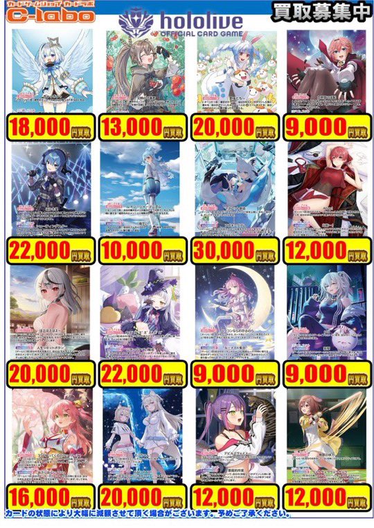 【ホロカ 買取情報】 高レア更新致しました✌️ hBP01-007 星街すいせい 80,000円買取 hBP02-004 沙花叉クロヱ 20,000円買取 hBP02-013 白上フブキ 9,000円買取 hY03-003 赤エール[さくらみこ] 2,000円買取 お買取お待ちしております