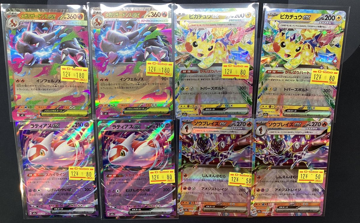 【ポケモンカード販売情報】 ✨️💥数量限定特価品💥✨️ 🔹メガリザードンXex RR 🔹ピカチュウex RR 🔹ソウブレイズex RR 🔹ラティアスex RR ご来店お待ちしております😵💫💓