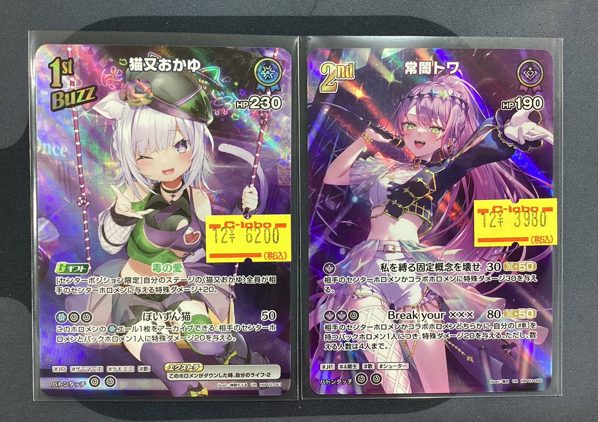 【ホロライブOCG販売情報】 こちらのUR入荷しました!! 🔵猫又おかゆ hBP02-041 🟣常闇トワ hBP03-056 どちらも特価での販売です💡´- 状態確認お気軽にお声掛けくださいませ🎶