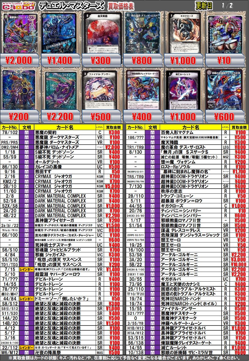 【デュエマ 買取情報】 🔥🔥本日更新🔥🔥 今年もよろしくお願い致します 汎用系の買取表になります 本日の買取受付1/2 11時から開始です 是非お持ち込みお待ちしております❣❣