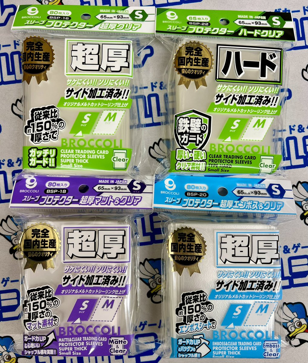 明日19日(金)発売🎉 / 厚さ約1.5倍! 硬くて安心! \ ブロッコリー スリーブプロテクター ✅超厚エンボス&クリア✨ ✅超厚マット&クリア✨ ✅超厚クリア✨ ✅ハードクリア✨ 「Sサイズ」入荷しました❗️ 明日、開店時より販売開始です。 皆様のご来店をお待ちしております😊