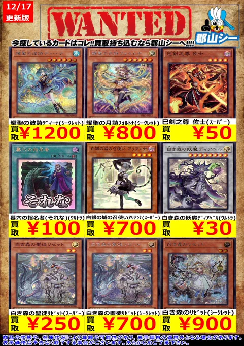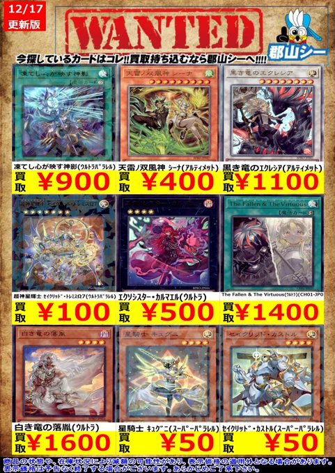 シーガル郡山店遊戯王お買取り情報 ※商品の状態や在庫状況により減額の可能性があり、表示価格の適用外となる場合がございます。
