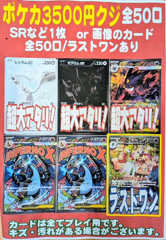 シーガル郡山店です! ポケカ3500円くじ作成いたしました! よろしくお願いいたします(ง🔥Д🔥)ง