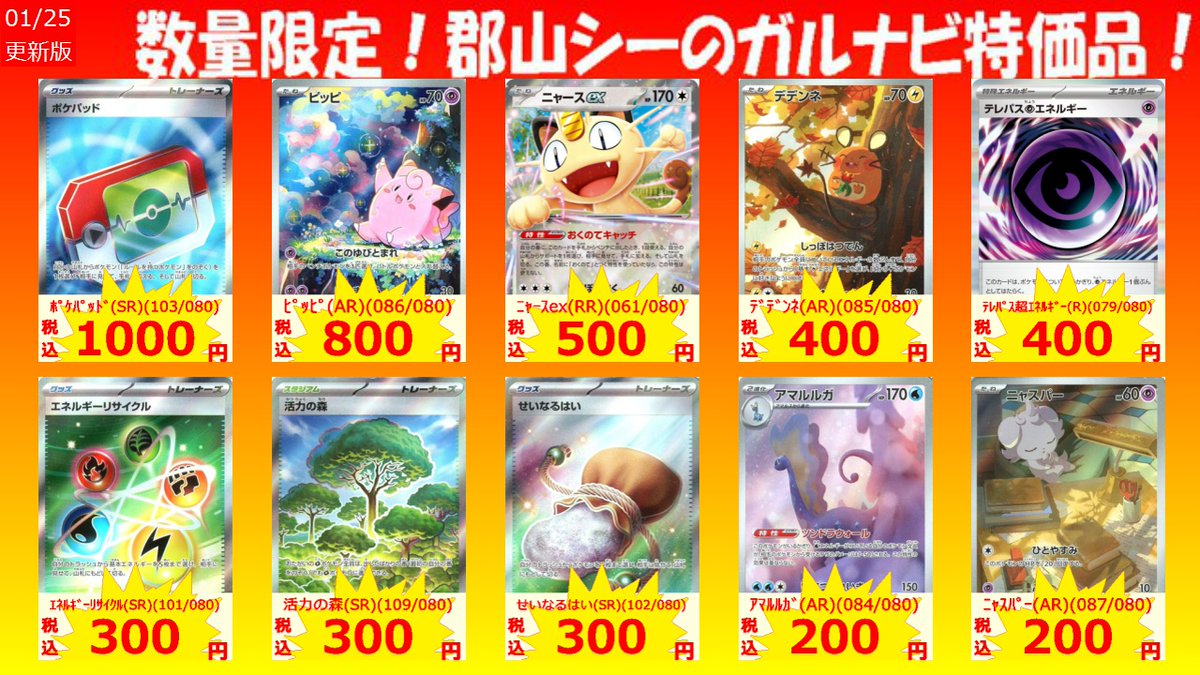 数量限定郡山シー限定ガルナビ特価品! ※買取金額ではございません※ ドラピオン(AR)(090/080) ¥100 アマルルガ(AR)(084/080) ¥200 ニャスパー(AR)(087/080) ¥200