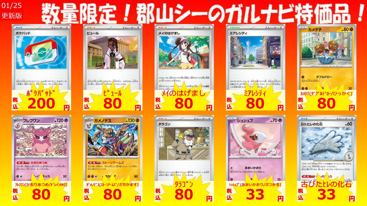 数量限定郡山シー限定ガルナビ特価品! ※買取金額ではございません※ ポケパッド ¥200 モクロー(ともだちをさがす/たいあたり) ¥33 ビビヨン(おおきなはね/ふきぬける) ¥33
