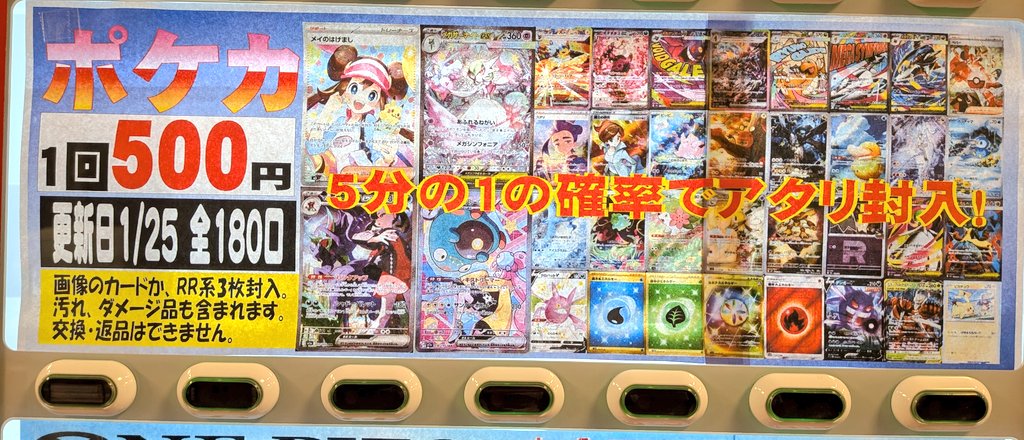 シーガル郡山店です! ポケカ500円自販機ガチャ作成いたしました! よろしくお願いいたします(ง🔥Д🔥)ง