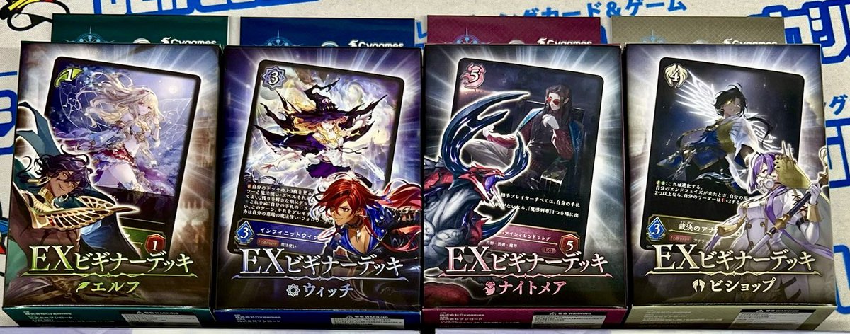 【入荷情報】 #シャドウバースエボルヴ ✅ EXビギナーデッキ 「エルフ」 「ウィッチ」 「ナイトメア」 「ビショップ」 入荷しました❗️ ※ビギナーデッキ2個購入で10枚入りスリーブをプレゼント🎁 皆様のご来店をお待ちしております😊