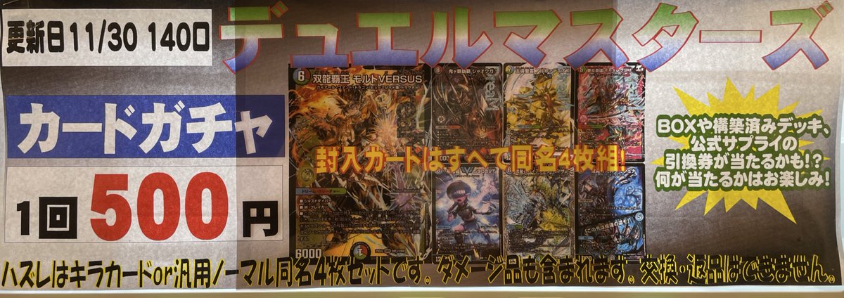 デュエマ500円自販機を補充いたしました❗️ 大当たりはモルトversus4枚セットです✨ よろしくお願いいたします🙇♂️