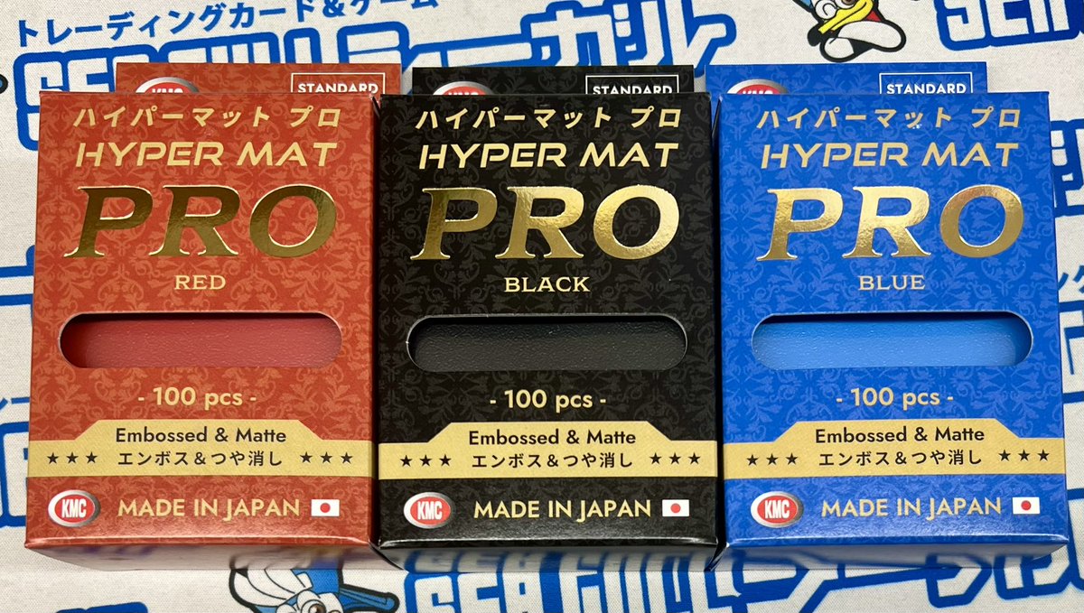明日12月1日(月)発売🎉 KMC新商品✨ 「ハイパーマットPRO」🔥 従来のハイパーマットよりさらに分厚く進化! しかも嬉しい100枚入り仕様‼️ 🟥 レッド ⬛️ ブラック 🟦 ブルー 以上の3色を在庫ご用意しております❗️ 明日開店時より販売開始です。 ぜひぜひチェックしてください😊✨