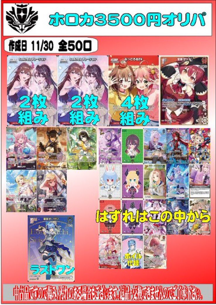 こんにちは(」・ω・) シーガル郡山店です。 ホロカ 3500円オリパを作成致しました。 ご来店お待ちしております。