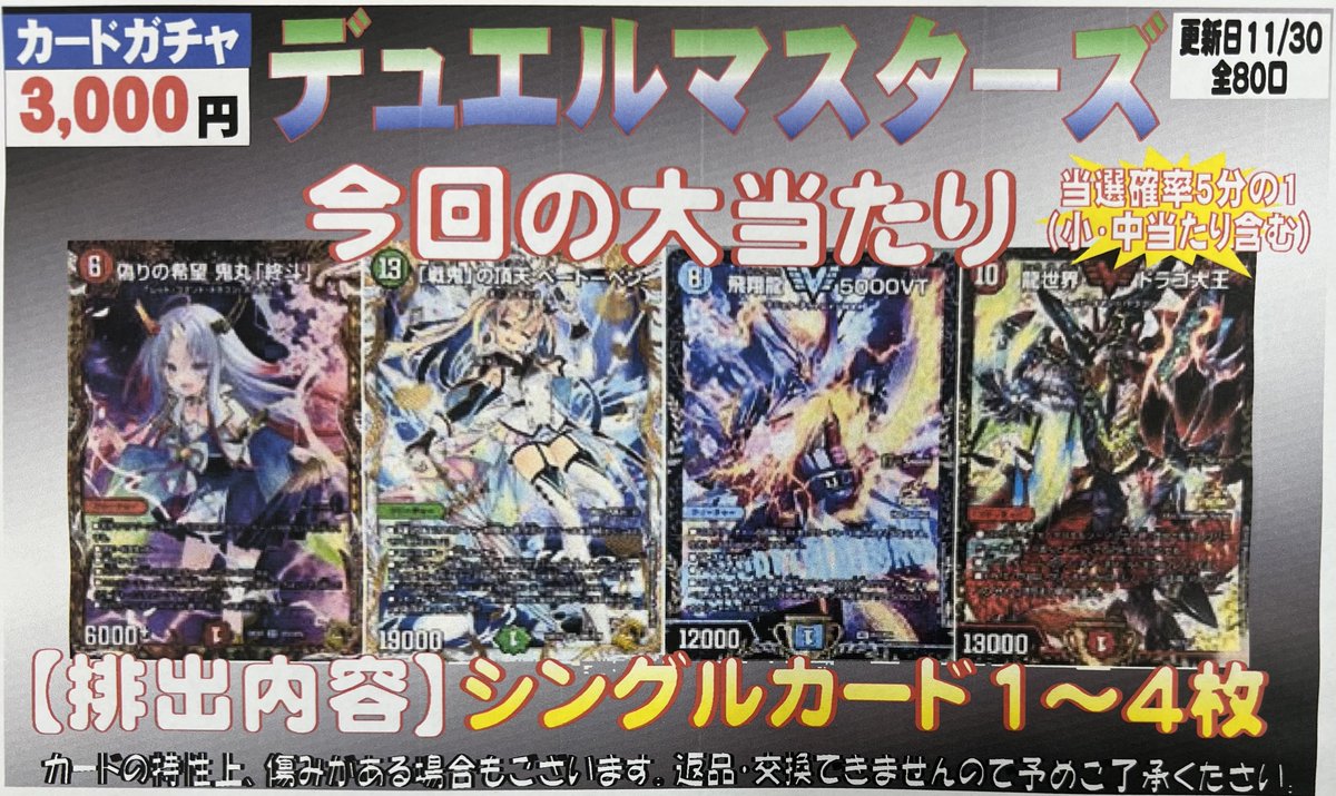 デュエマ3000円自販機ガチャを更新致しました‼️ E2姉妹やCS優勝プロモが当たっちゃいます🤩 是非ぜひお試しください(*´ω`*)