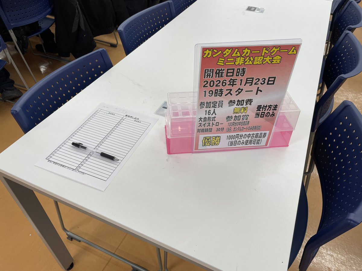 ガンダムカードゲーム 非公認大会 絶賛受付中です‼️ エントリーシートの方にプレイヤーネームのご記入していただくだけで構いません。 ご参加お待ちしております🙇♀️