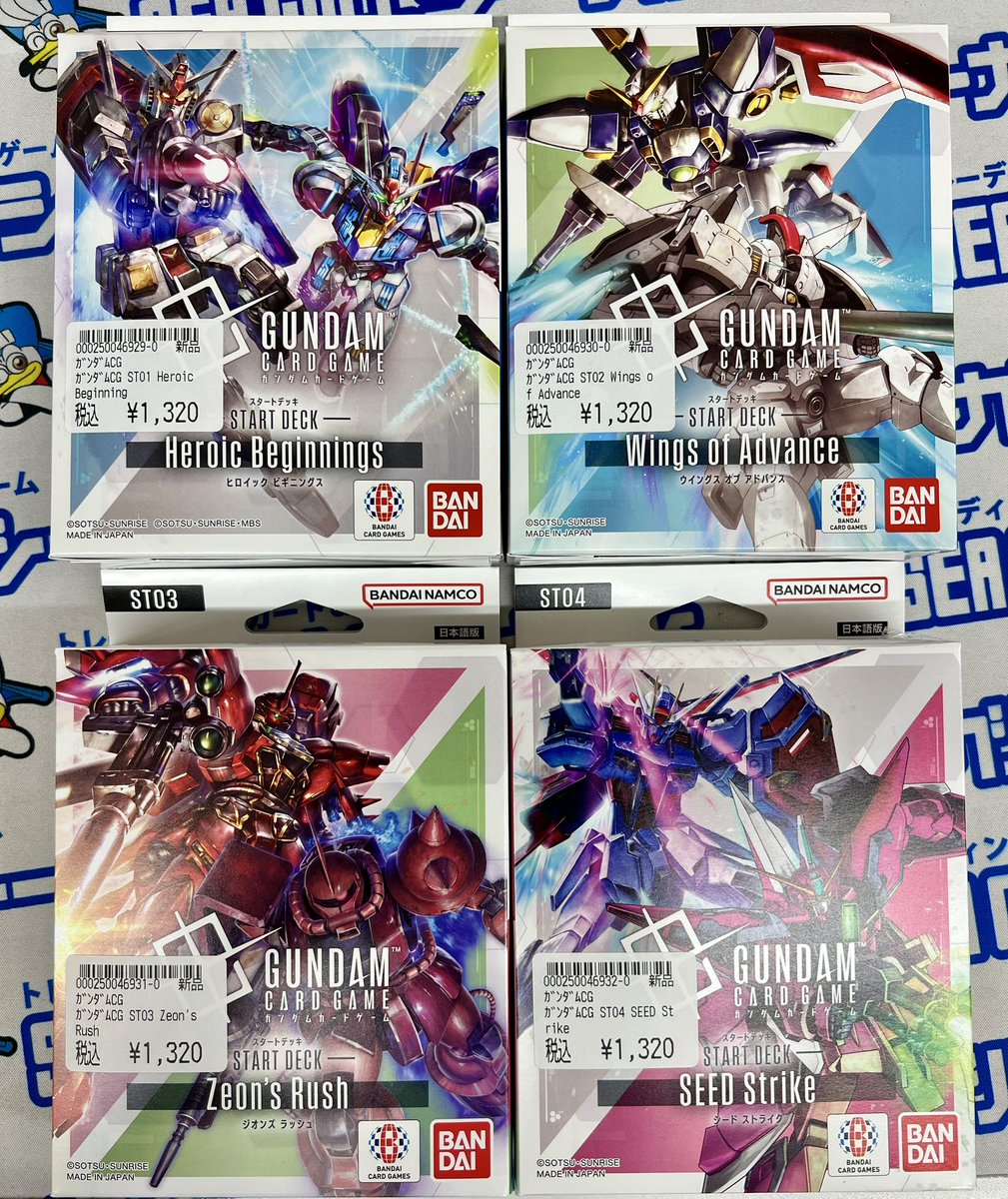 【入荷情報】 #ガンダムカードゲーム スタートデッキ ✅Heroic Beginnings [ST01] ✅Wings of Advance [ST02] ✅Zeon’s Rush [ST03] ✅SEED Strike [ST04] 入荷しました❗️ 皆様のご来店をお待ちしております😊