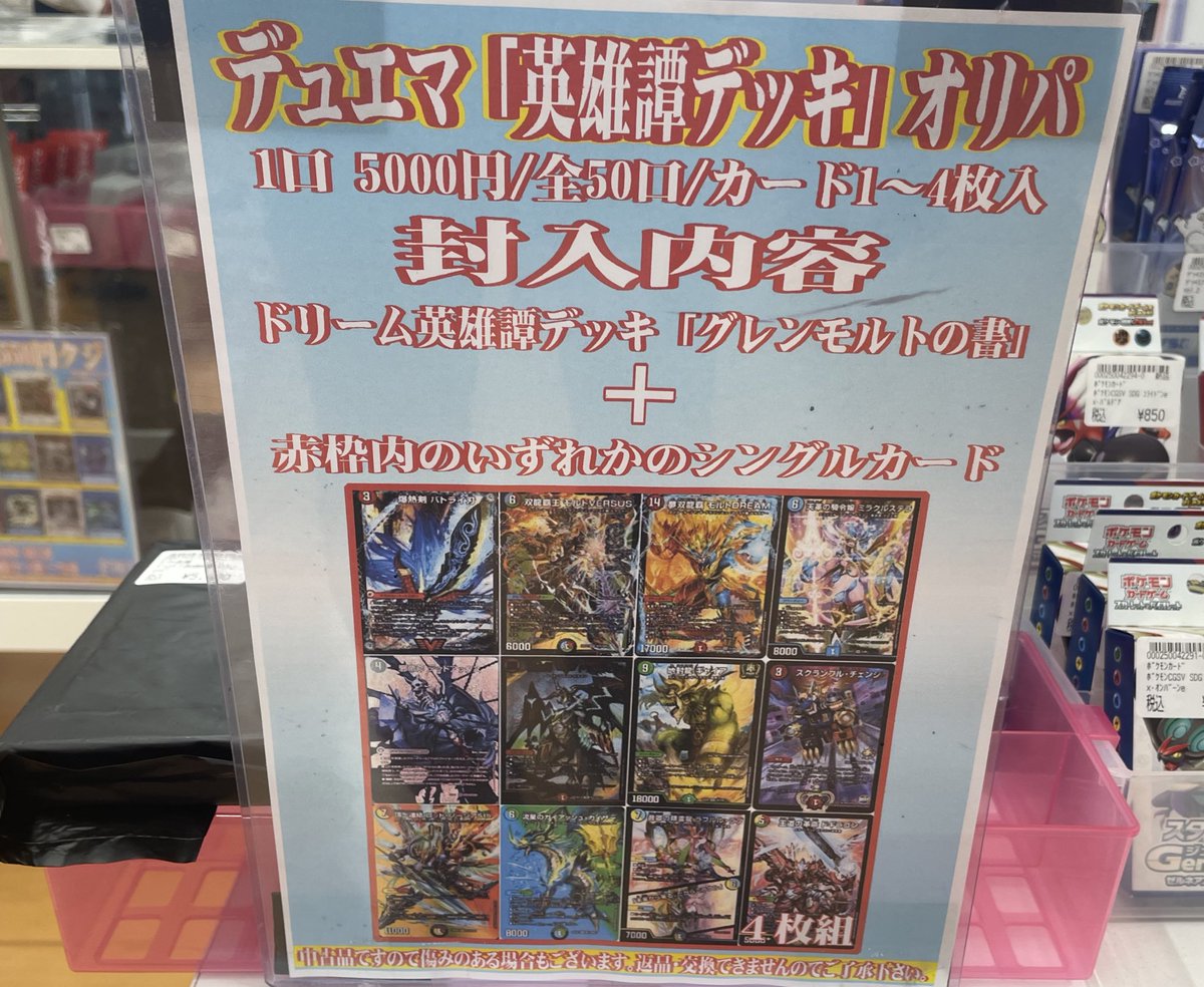 デュエマ『英雄譚デッキ』オリパ残り1個となりました❗️ 検討中の方はお早めに💦