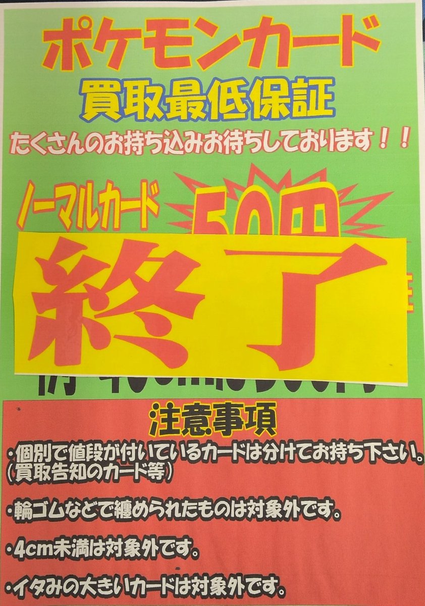 シーガル郡山店です! ポケモンカードノーマルカード買取保証、終了いたします! たくさんのお持ち込み、ありがとうございました♡🙏☺