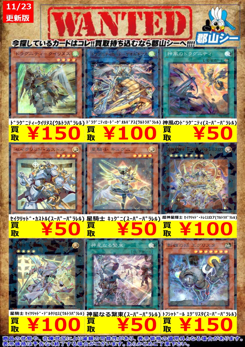 シーガル郡山店遊戯王お買取り情報 ※商品の状態や在庫状況により減額の可能性があり、表示価格の適用外となる場合がございます。 #遊戯王 #シーガル #郡山店
