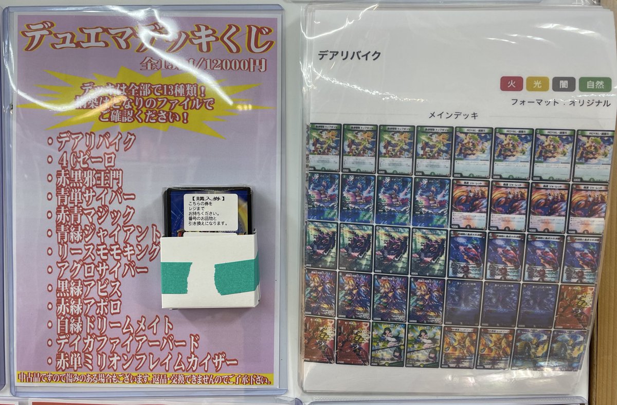 デュエマデッキくじを作成いたしました〜 封入デッキの構築はとなりのファイルからご確認いただけます❗️ 競技シーンで活躍中のデッキがお得に手に入るチャンス✨ ぜひお試しください🙇♂️