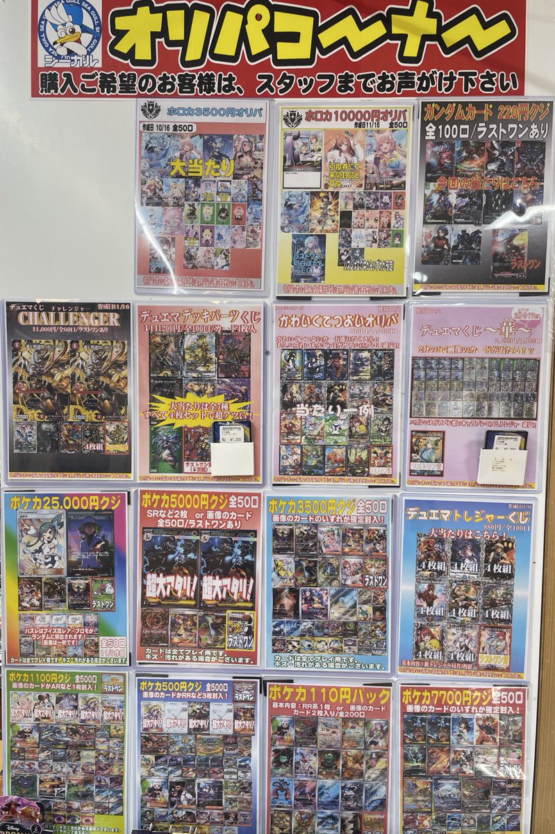 こんにちは(」・ω・) シーガル郡山店です。 ただいま展開中のオリパ各種はこちら⬇️⬇️ となっております。 ご来店お待ちしております(*^^*)
