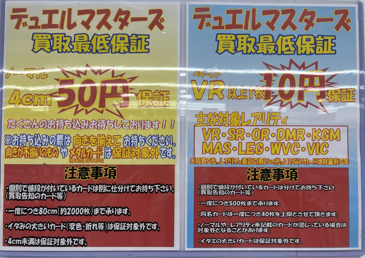 デュエマ買取最低保証継続中です‼️ 特に《VR以上の光り物》がまだまだ足りません😭 たくさんのお持ち込みよろしくお願い致します‼️ ⚠️お持ち込みの際はPOP内容をよくご確認の上ご来店ください!