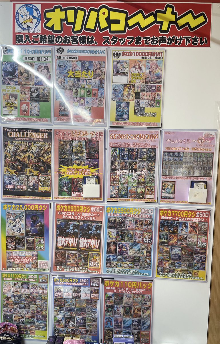こんにちは(」・ω・) シーガル郡山店です。 ただいま展開中のオリパ各種、自販機各種はこちらとなっております。 ご来店お待ちしております(*^^*)
