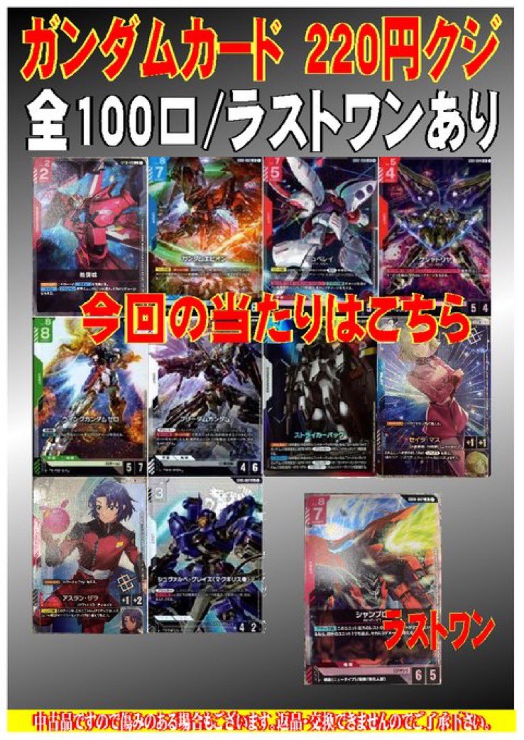 こんにちは(」・ω・) シーガル郡山店の田中です。 ガンダムカード 220円オリパを作成致しました。 ご来店お待ちしております(*^^*)