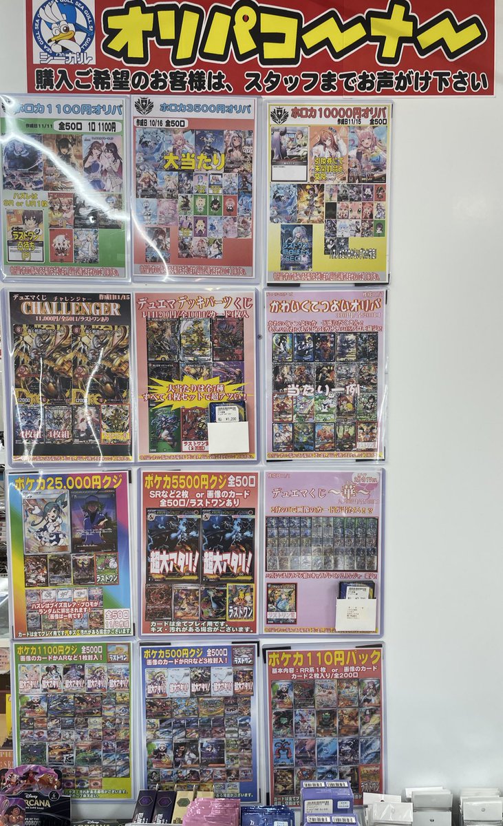 こんにちは(」・ω・) シーガル郡山店です。 ただいま展開中のオリパ各種はこちら⬇️⬇️ となっております。 新しく ✨デュエマ✨ ✨ホロカ✨ のオリパを作成致しました。 ご来店お待ちしております(*^^*)