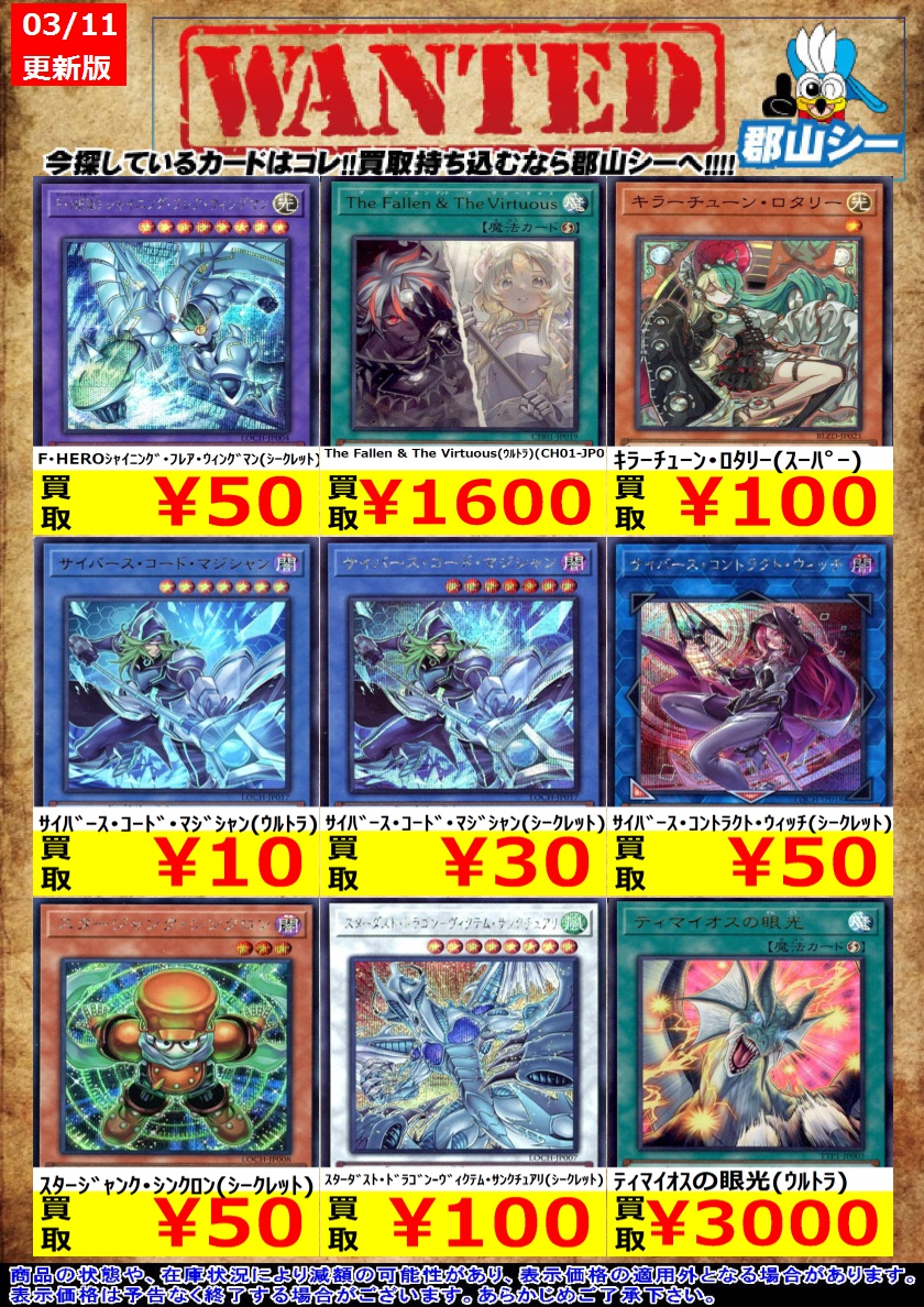 シーガル郡山店遊戯王お買取り情報 ※商品の状態や在庫状況により減額の可能性があり、表示価格の適用外となる場合がございます。 #遊戯王 #シーガル #郡山店