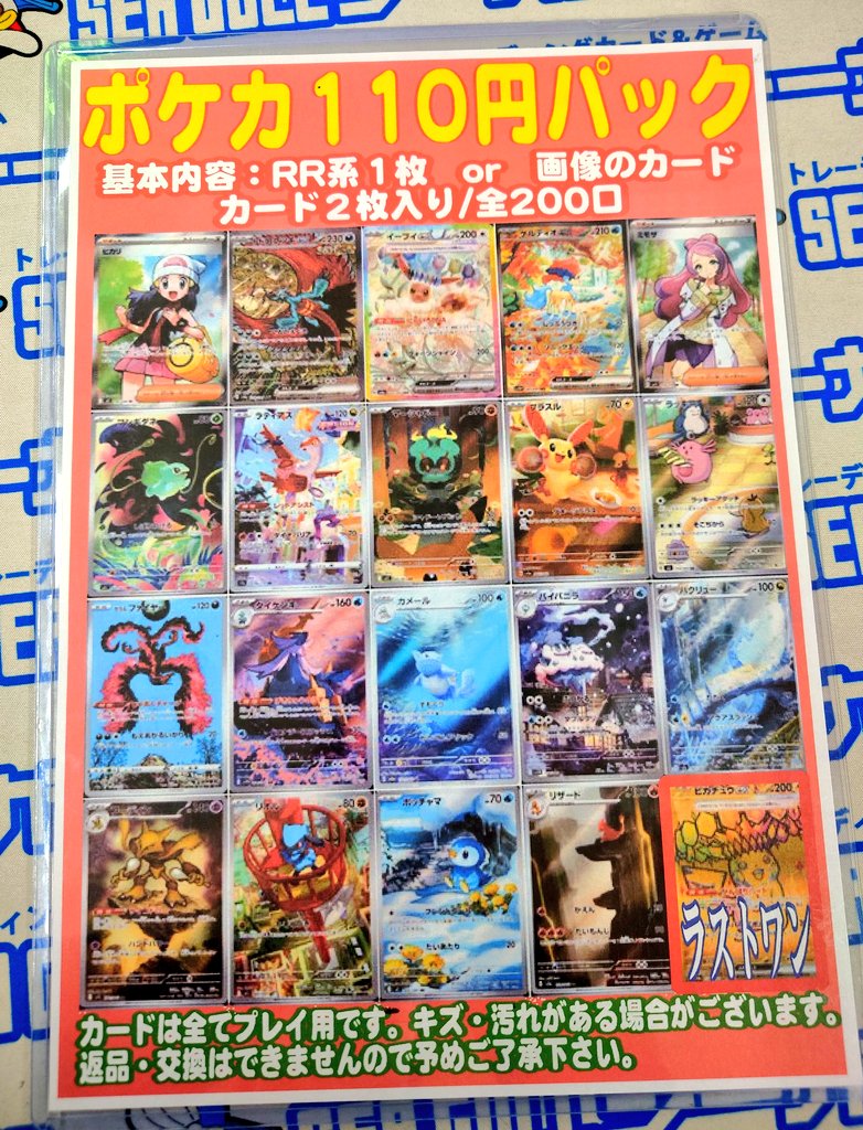 シーガル郡山店です! ポケモンカード 110円パック 新しく作成致しました! ラストワン賞もございます! よろしくお願い致します😊