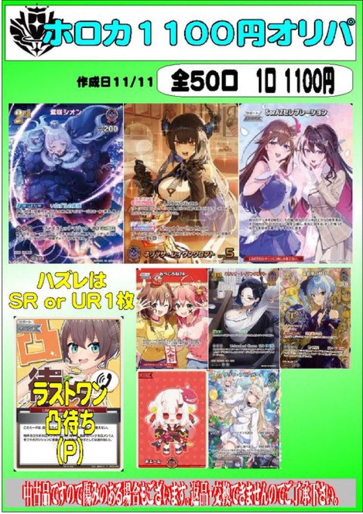 こんにちは(」・ω・) シーガル郡山店です。 ホロカ 1100円オリパを作成致しました。 ご来店お待ちしております(*^^*)