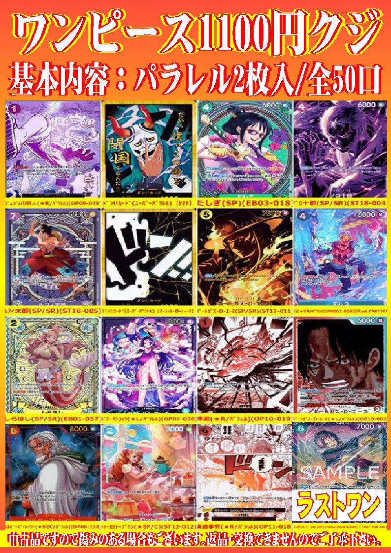 シーガル郡山店です❗ ワンピ1100円クジ作成致しました‼️ よろしくお願いします🙇