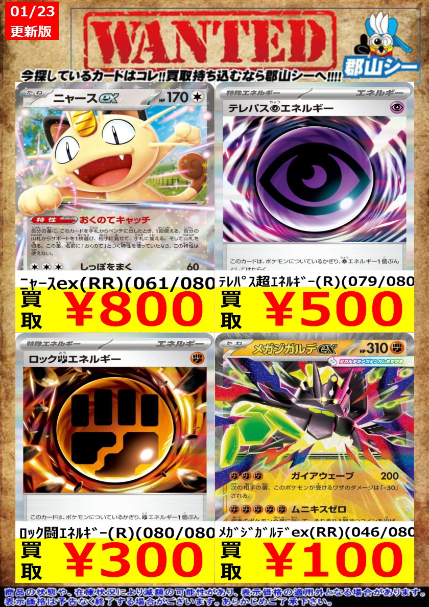 シーガル郡山店ポケカ数量限定お買取り情報更新です!よろしくお願いいたします! ※商品の状態や在庫状況により減額の可能性があり、表示価格の適用外となる場合がございます。 ロケット団のファクトリー ¥30 イグニッションエネルギー ¥30 パワープロテイン ¥30