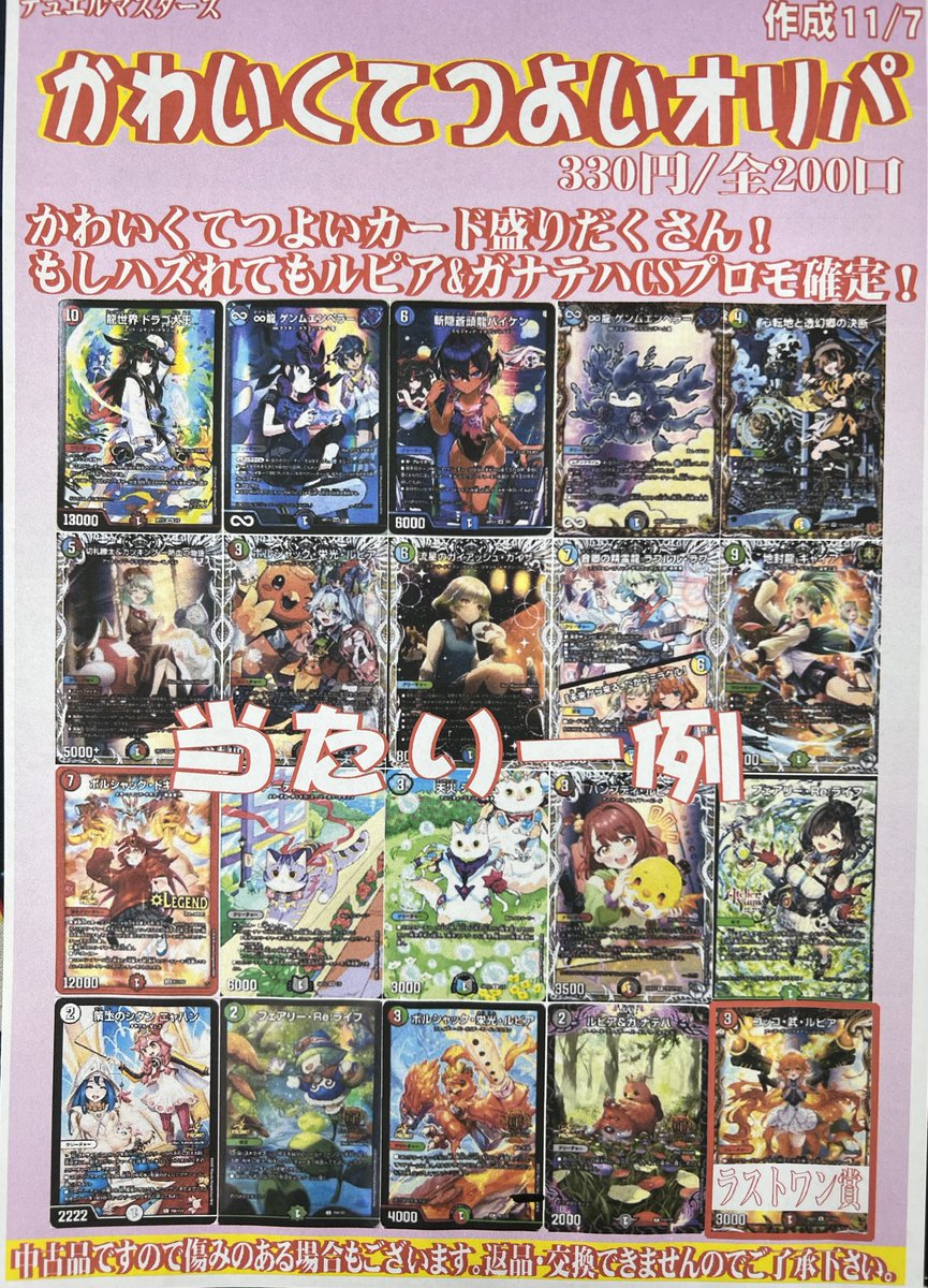 🌈デュエマかわいくてつよいオリパ🌈 330円全200口 展開しております☺️ ドラゴン娘や猫ちゃん神アート等々…︎💕︎︎ 是非ぜひつまんでみてください(*´ω`*)