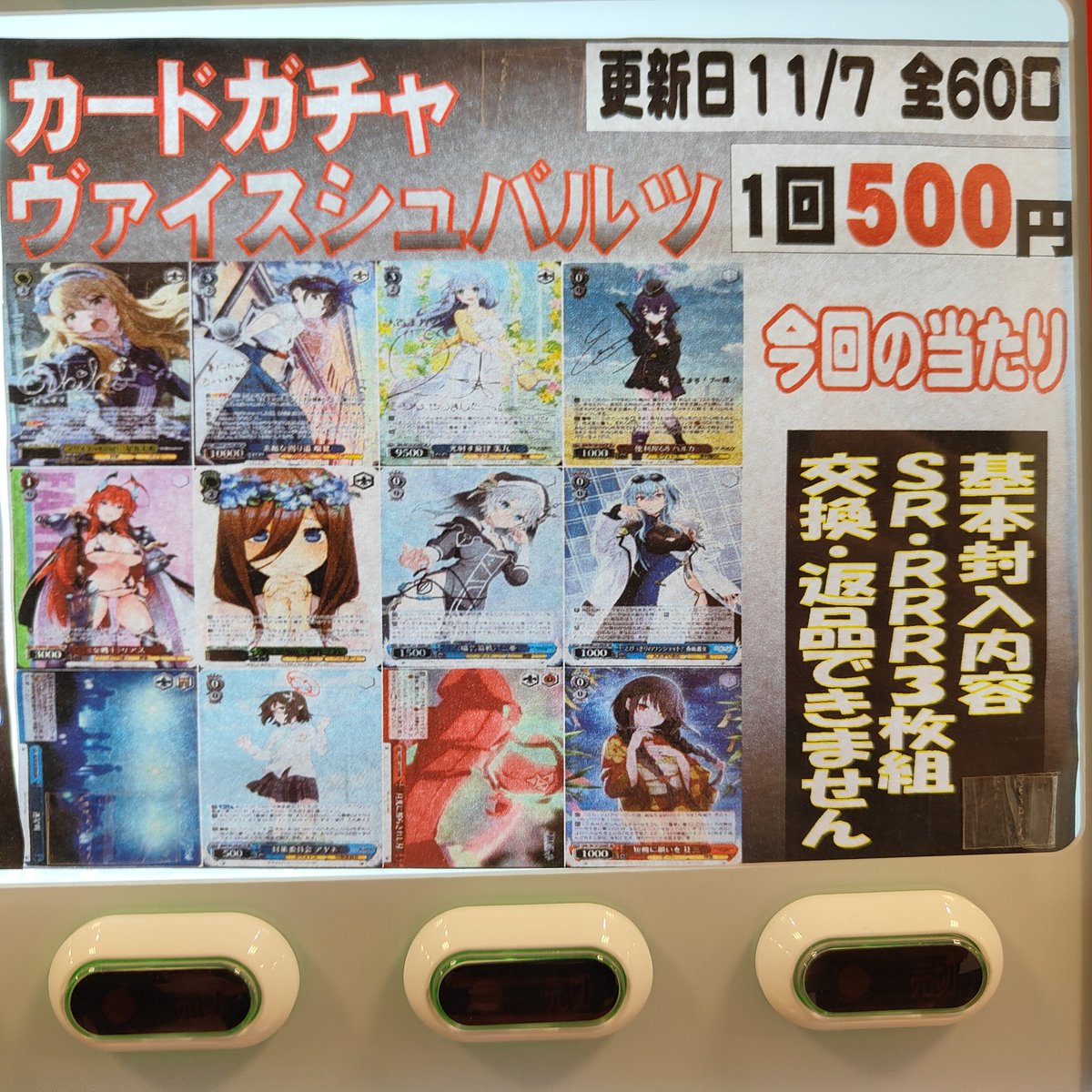 シーガル郡山店ヴァイス担当です( ・∇・) カードガチャ ヴァイスシュヴァルツ 更新しました✨( ✧д✧) 1回500円、全60口 よろしくお願いします‼️‼️‼️