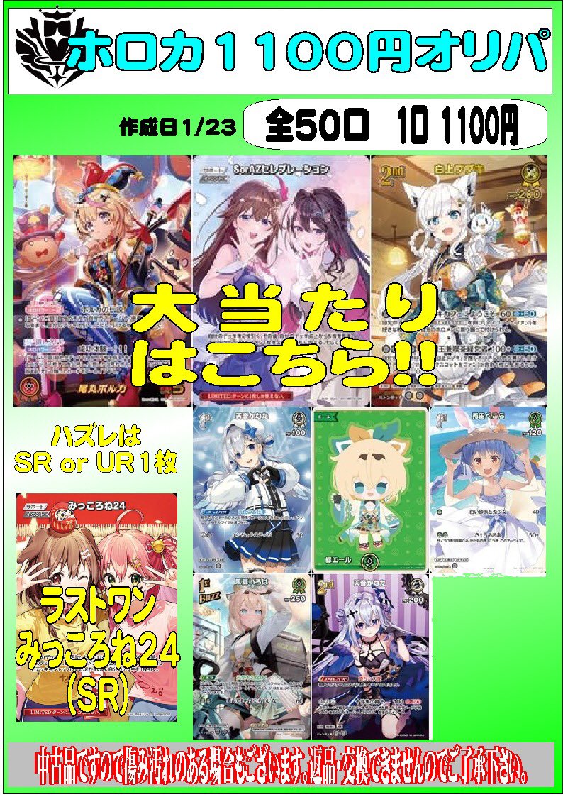 こんにちは(」・ω・) シーガル郡山店です。 ホロカ1100円オリパを作成致しました。 ご来店お待ちしております(*^^*)