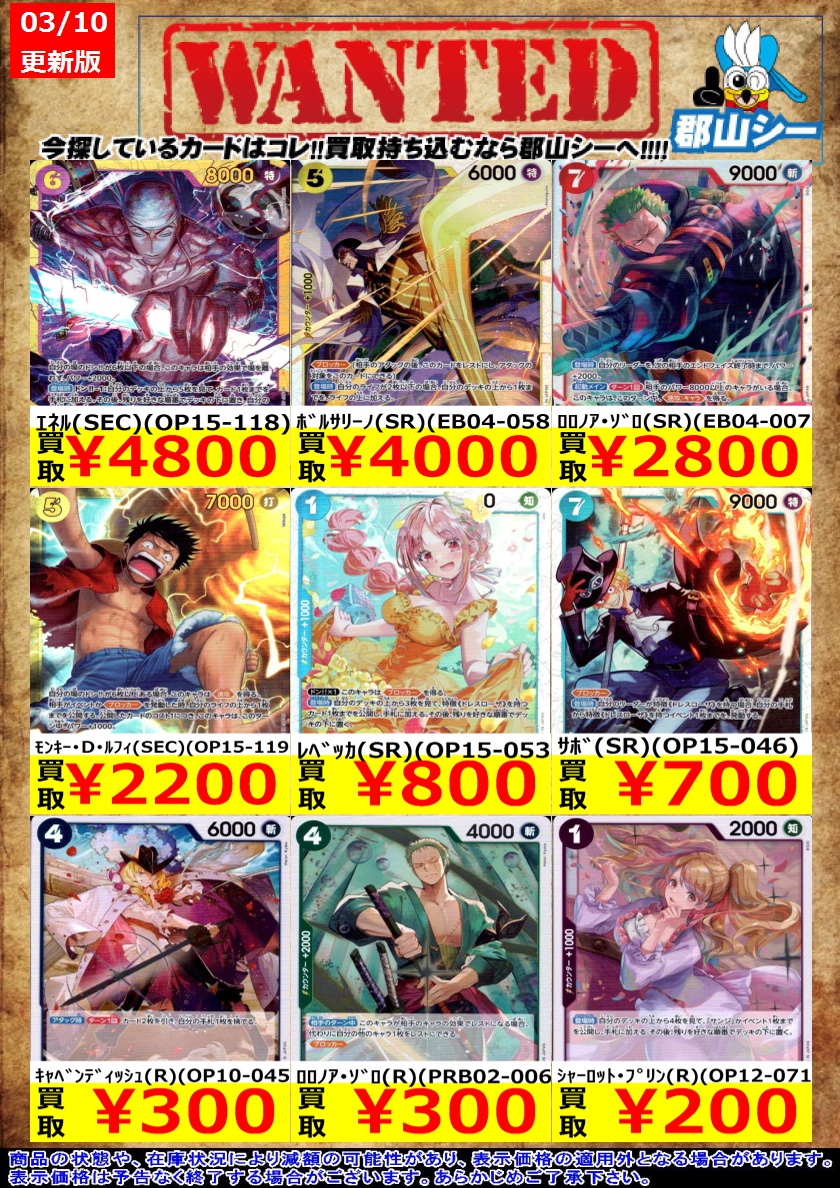 シーガル郡山店です ワンピ訳あり特価商品追加致しました‼️ よろしくお願いします🙇