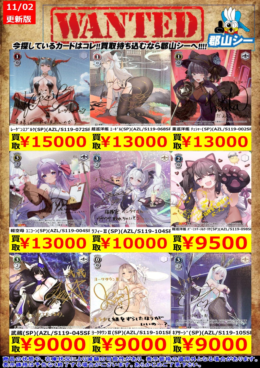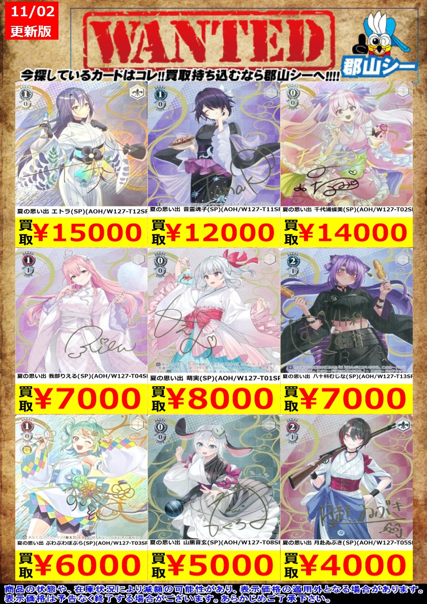 シーガル郡山店ヴァイスSPカードお買取り情報!※商品の状態や在庫状況により減額の可能性があり、表示価格の適用外になる場合がございます。予めご了承ください。